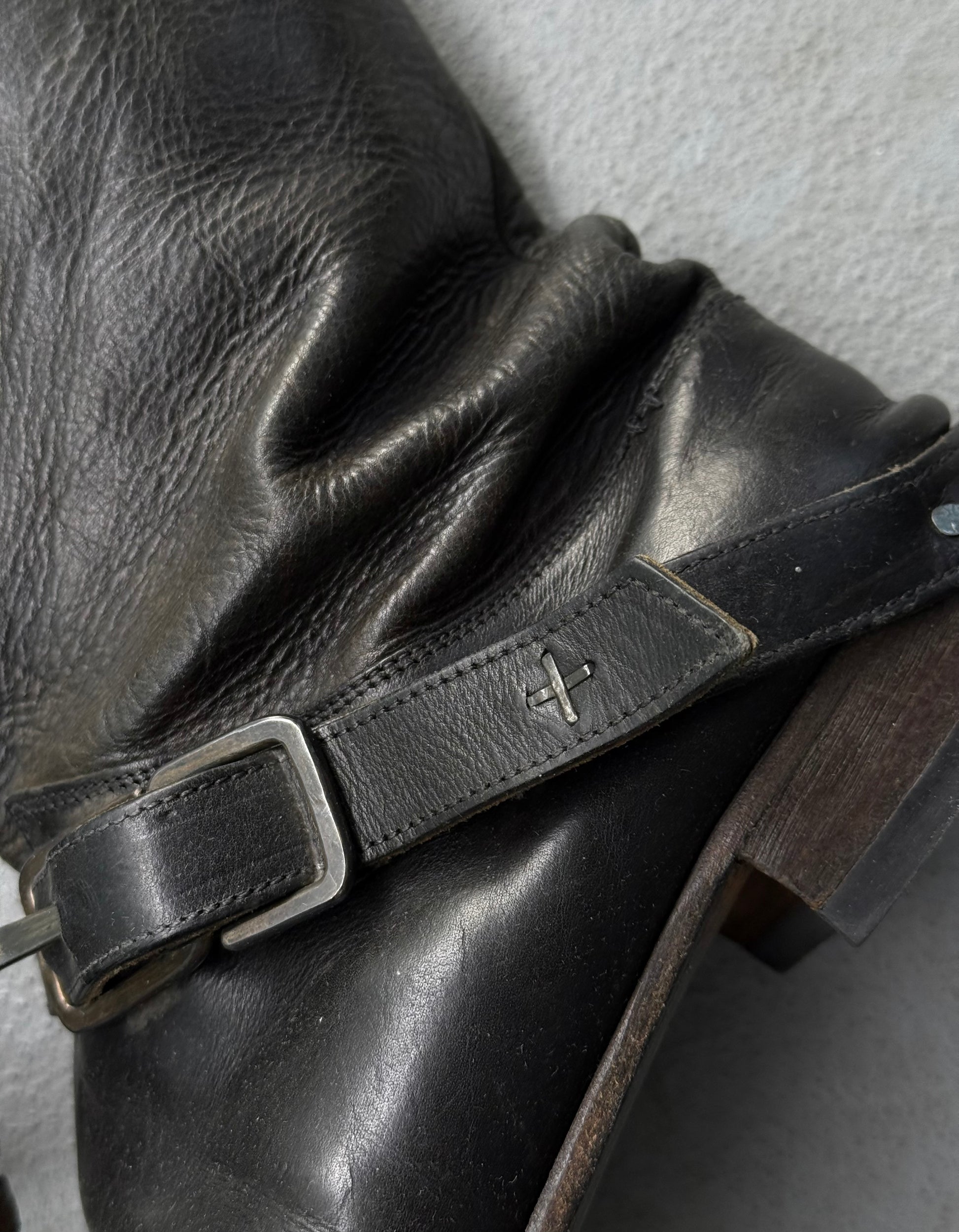 - .925 silver cross on the left boot strap