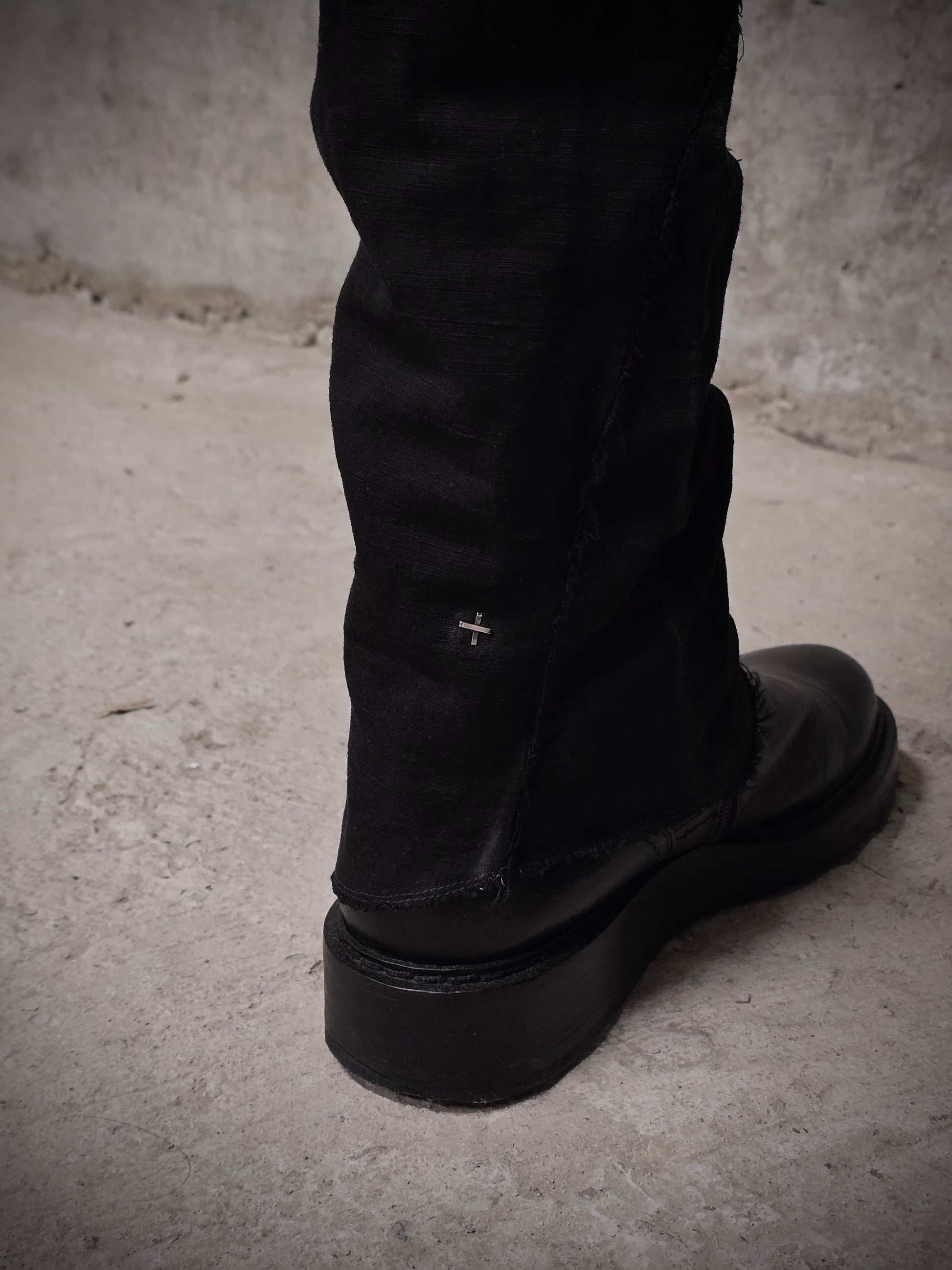 - Signature .925 silver cross at the back left leg opening