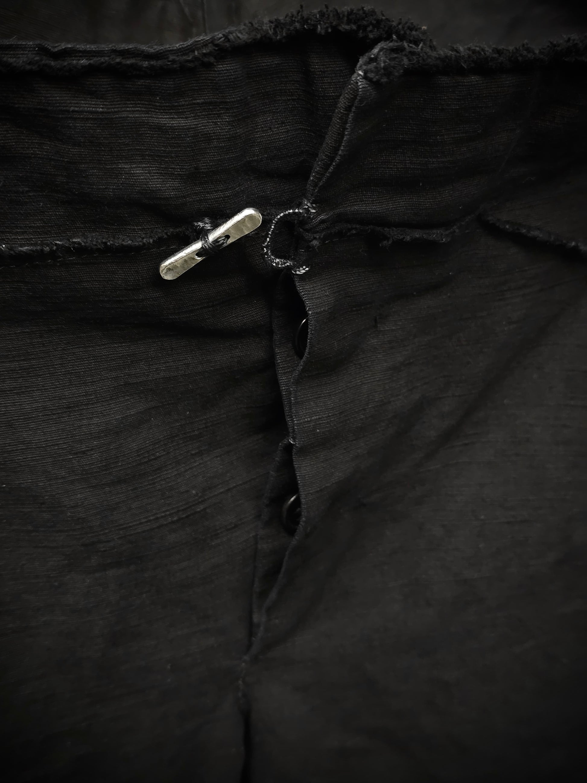 - 2 buffalo horn button fly, .925 silver front closure & inner horn button closure