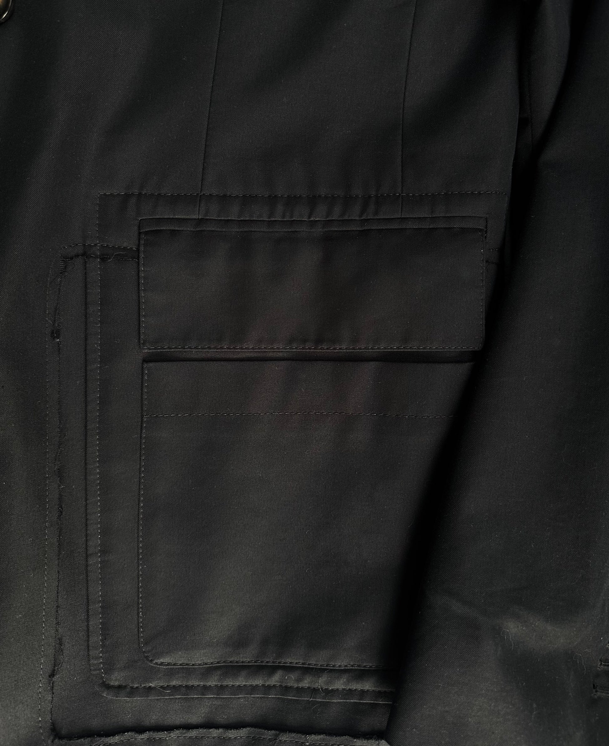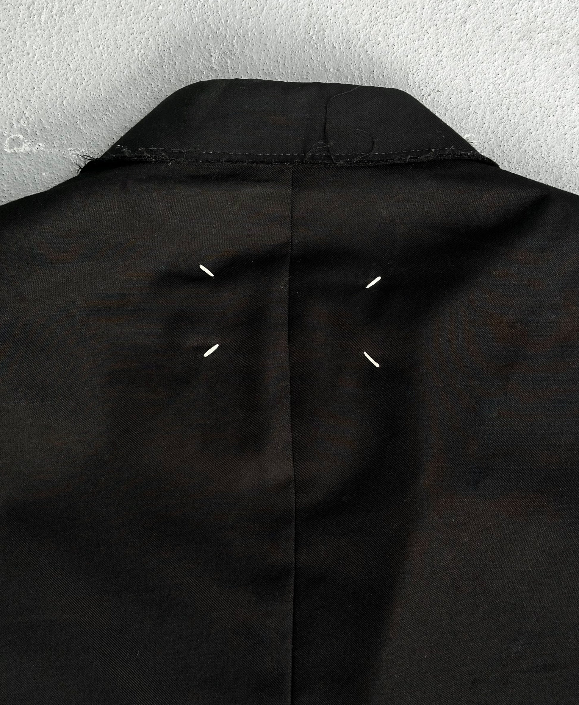 Martin Margiela, a master of avant-garde fashion, revolutionized the industry with his conceptual and boundary-pushing designs. Emerging in the late 1980s, Margiela’s early period was marked by deconstructionist techniques, unconventional materials, and a rejection of traditional fashion norms. Known for his anonymity and emphasis on anonymity and anti-branding, he challenged the status quo by blurring the lines between art and fashion. His legacy will keep echoing throughout time, paved the way for designers that come after and his work has been an inspiration for the entire current zeitgeist. This particular item features reconstructed pockets on a sleek black blazer from Margiela's Men's Collection, blending classic tailoring with the brand's signature deconstructed aesthetic.
