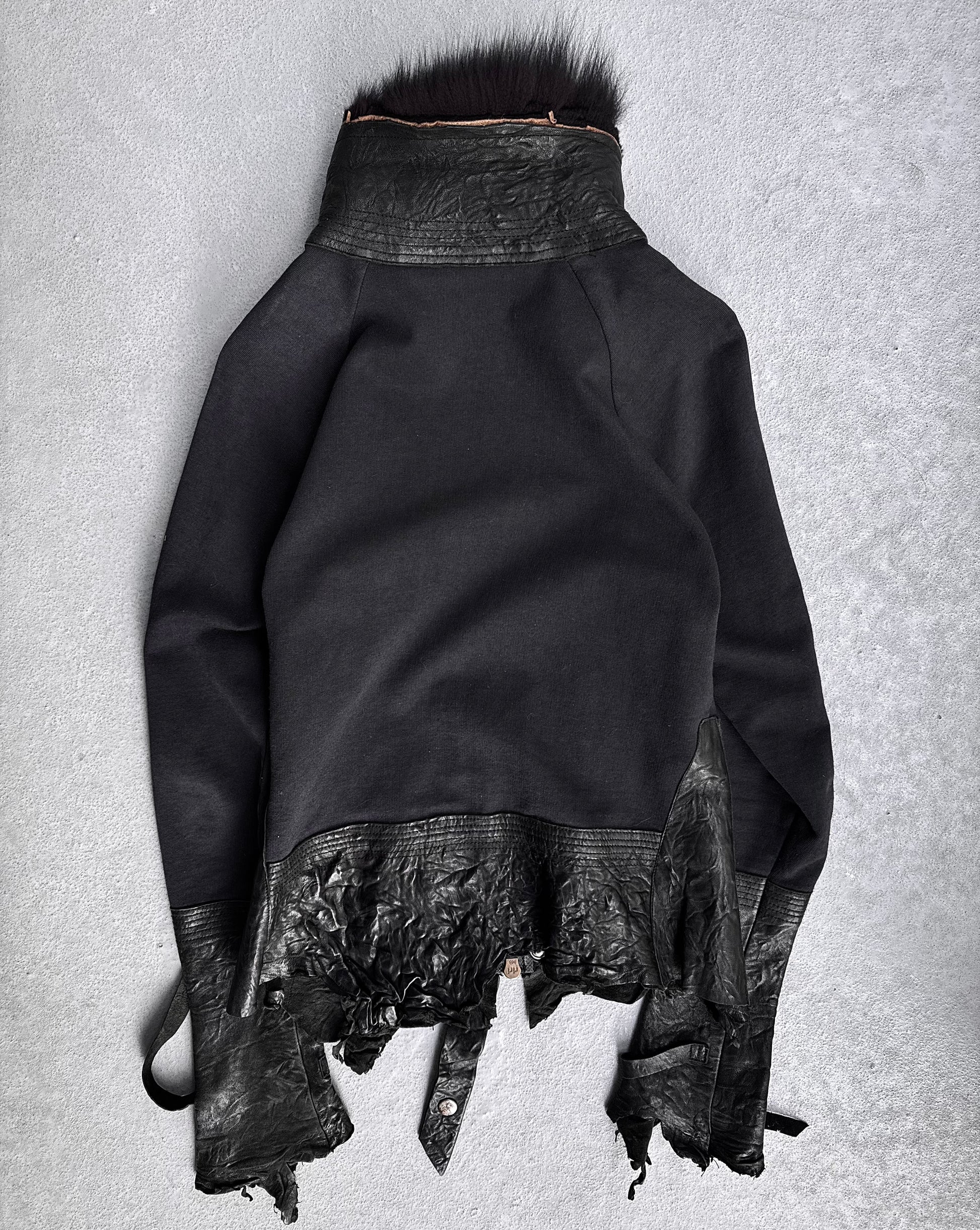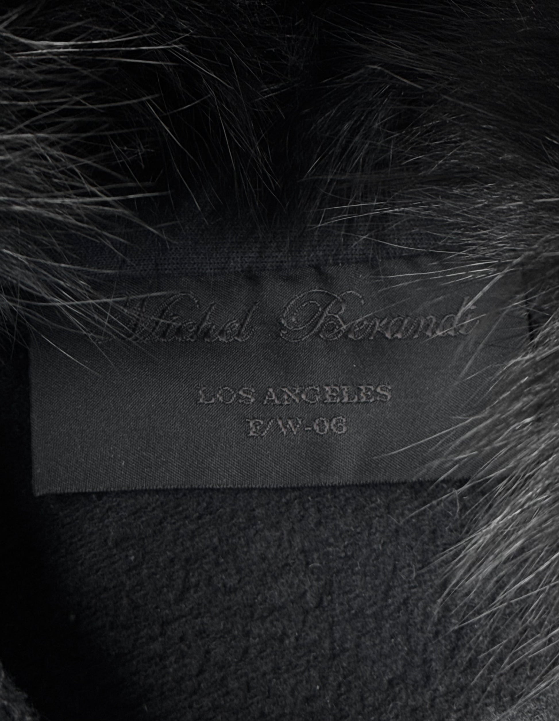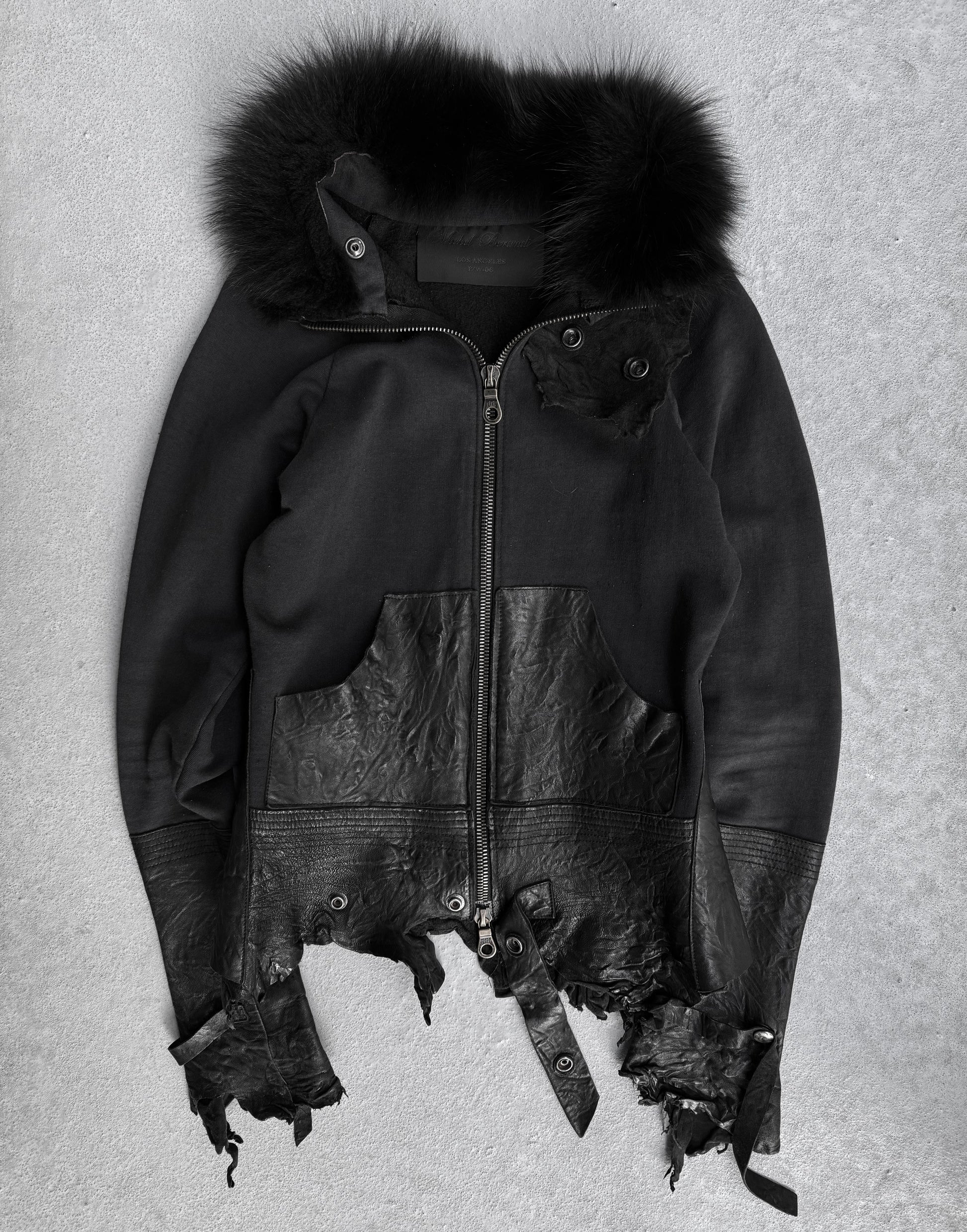Michel Berandi AW06 Fox Fur Trimmed Lambskin Leather Navy Hybrid Zip-up Hoodie