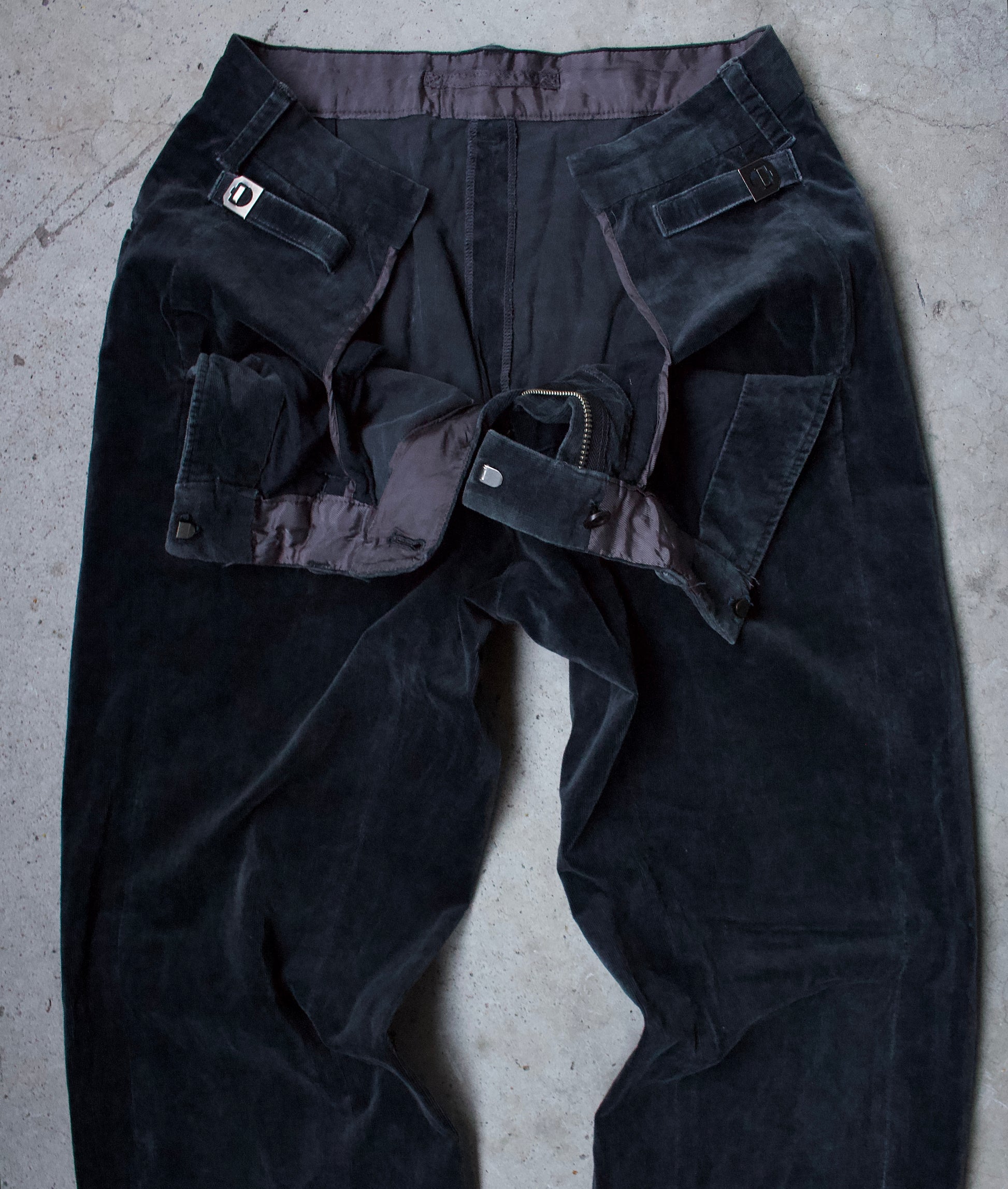 Mihara Yasuhiro, the innovative Japanese fashion designer, established his eponymous label with a distinct fusion of streetwear and high fashion. This pants in particular were reconstructed with adjustable hook fastenings that allows the wearer save some time for a quick release.