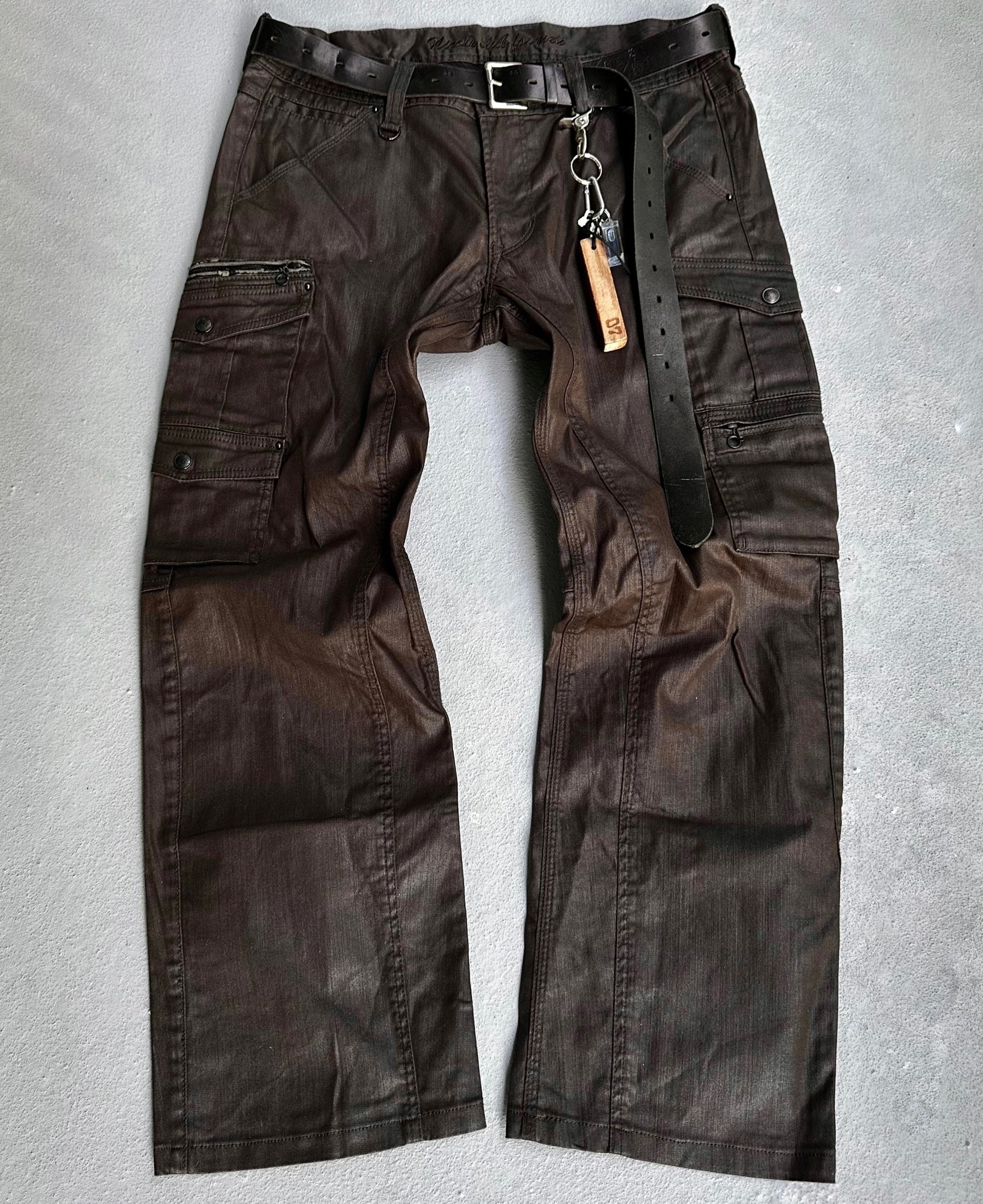 NICOLE CLUB FOR MEN Early 00s Waxed Bootcut Cargo Pants