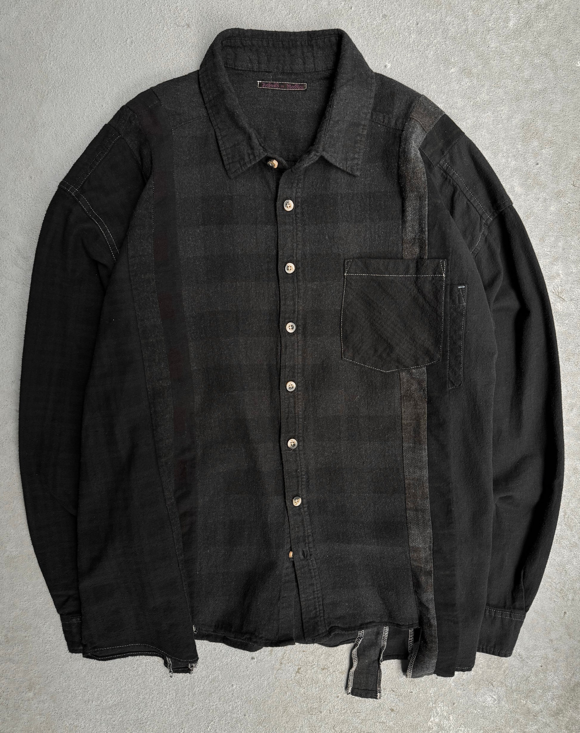 Rebuild by Needles 7-cut Reconstructed Black Plaid Flannel Shirts