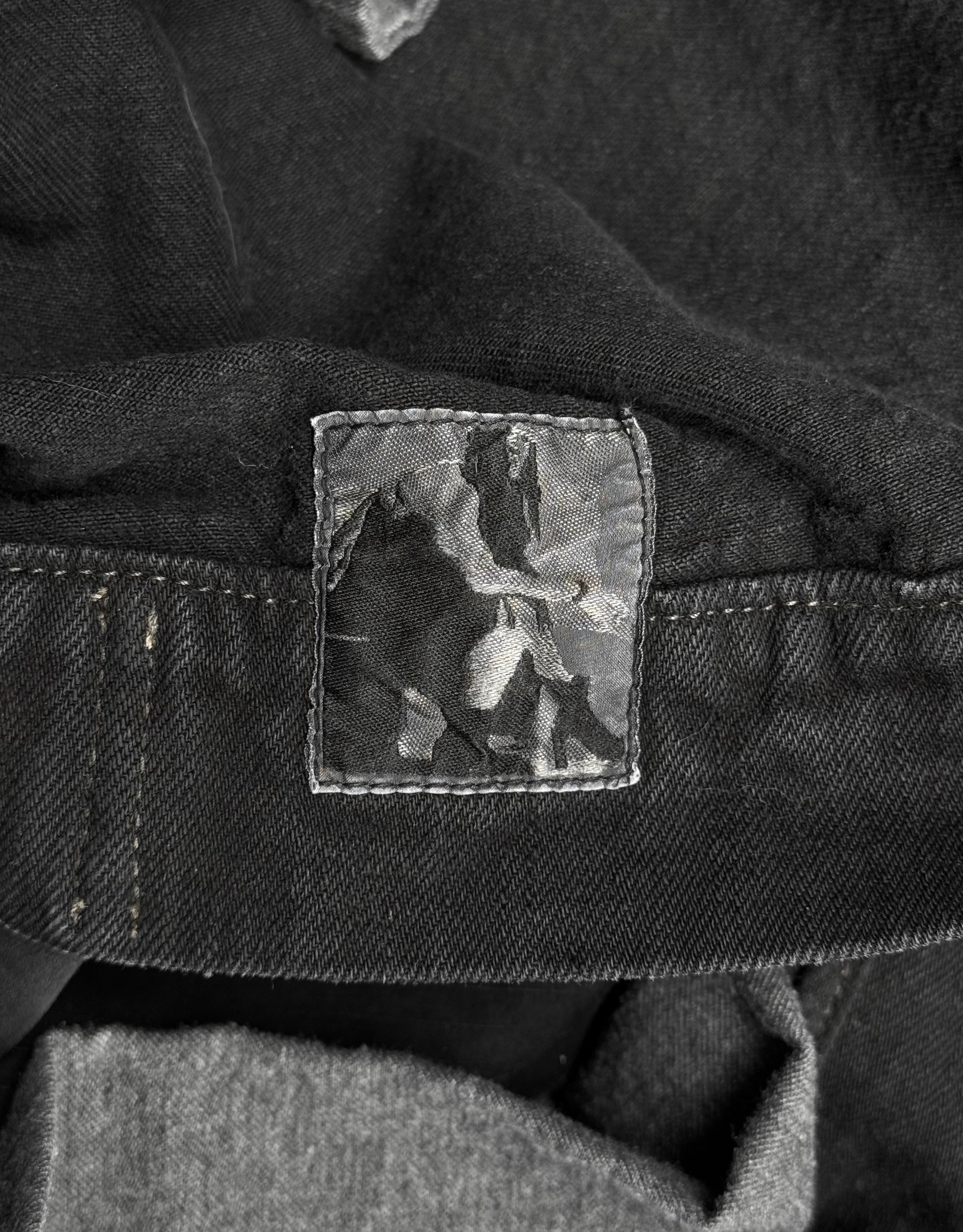 Rick Owens’ reinterpretation of the classic worker jacket first appeared in the early 2000s under his SLAB label, later evolving into a staple of the DRKSHDW line. Stripped of traditional utility tropes, his version favors asymmetry, industrial fabrics, and post-apocalyptic functionality. This Autumn/Winter 2009 “CRUST” iteration embodies that ethos—crafted with a subtle wax-coated body, cotton poplin sleeves, interior carrying straps, and a concealed back compartment. It merges minimalist design with dystopian utility, turning a working-class garment into an everyday uniform for the label’s cult following.
