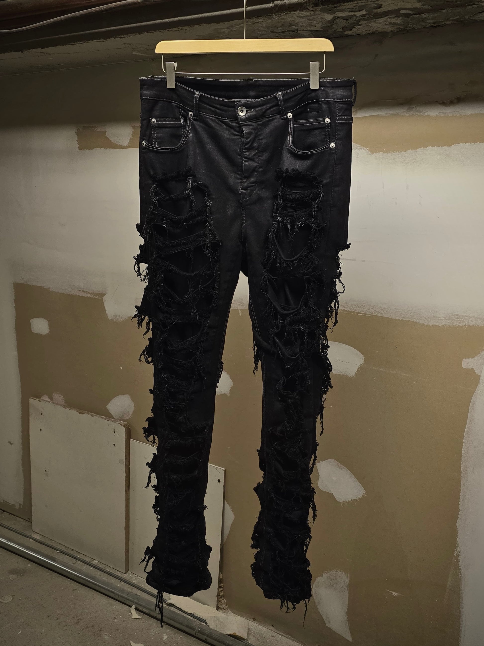 Rick Owens DRKSHDW AW22 "STROBE" Slashed 'Detroit Cut' Waxed Denim
