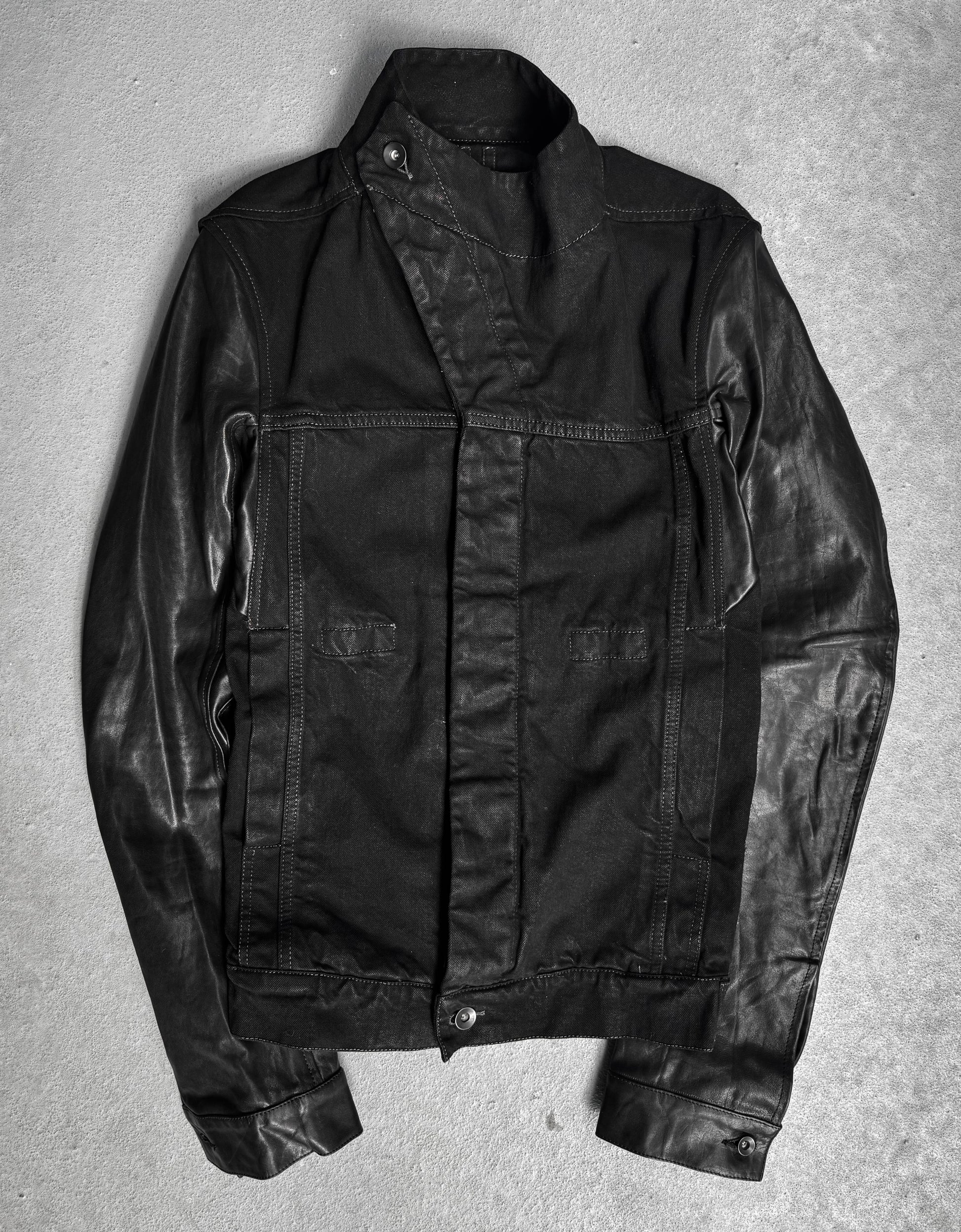 Rick Owens DRKSHDW SS14 "VICIOUS" Slave Hybrid Leather Sleeves Waxed Denim Jacket