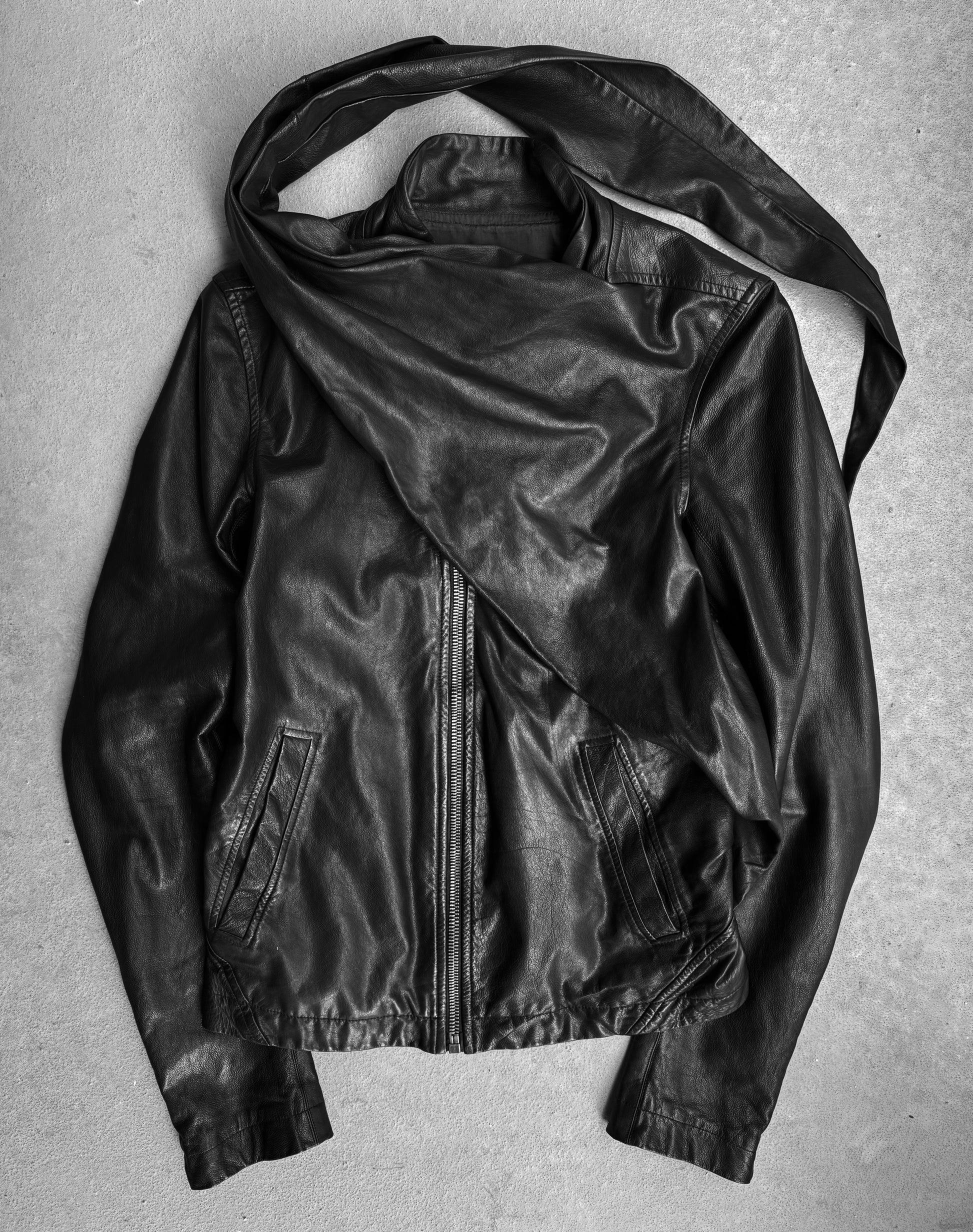 Rick Owens SS11 “ANTHEM” Light Calfskin Leather Scarf Collar Jacket