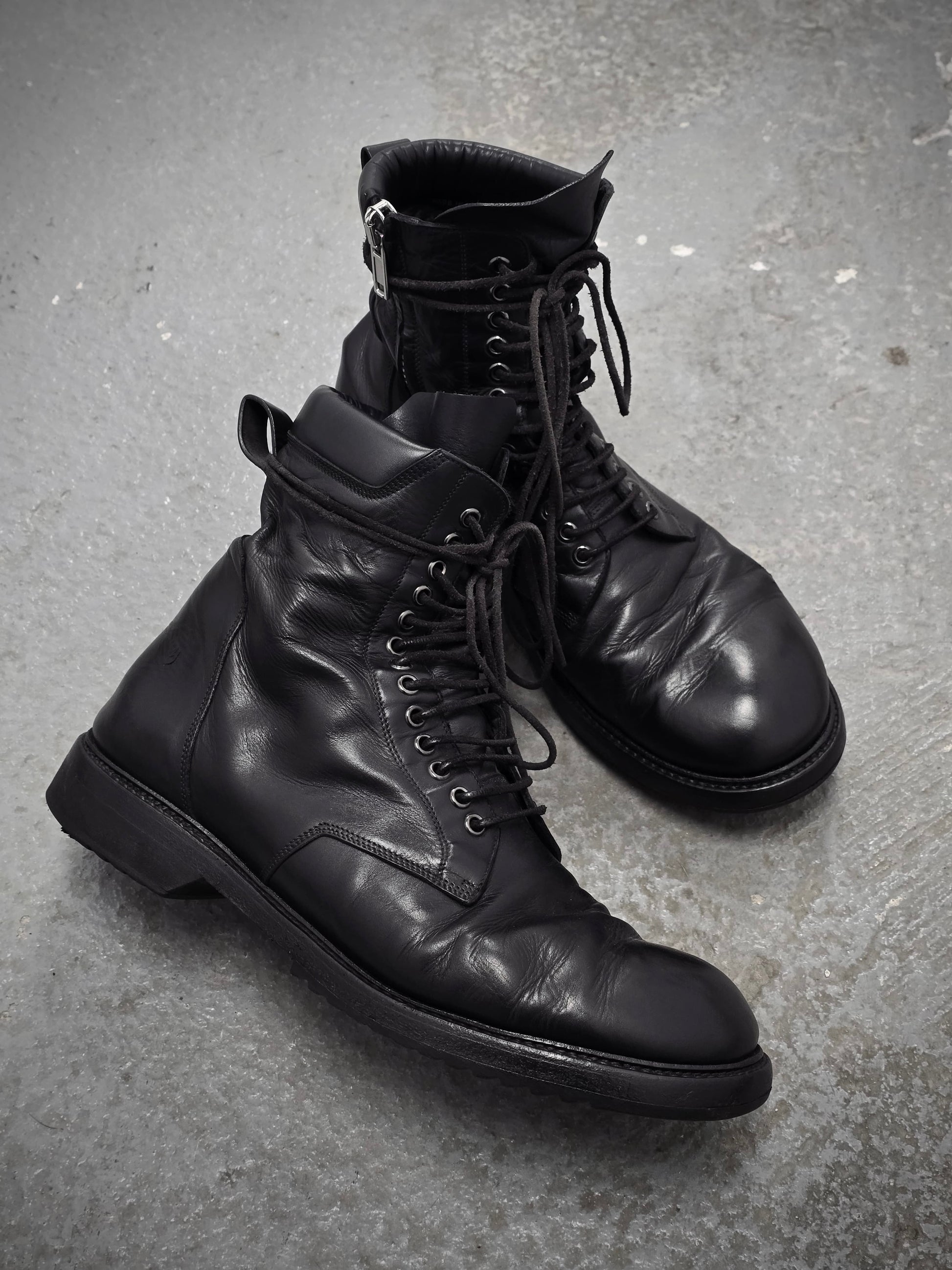 Rick Owens SS15 "FAUN" Goodyear Flex Calf Leather Side Zip Combat Boots