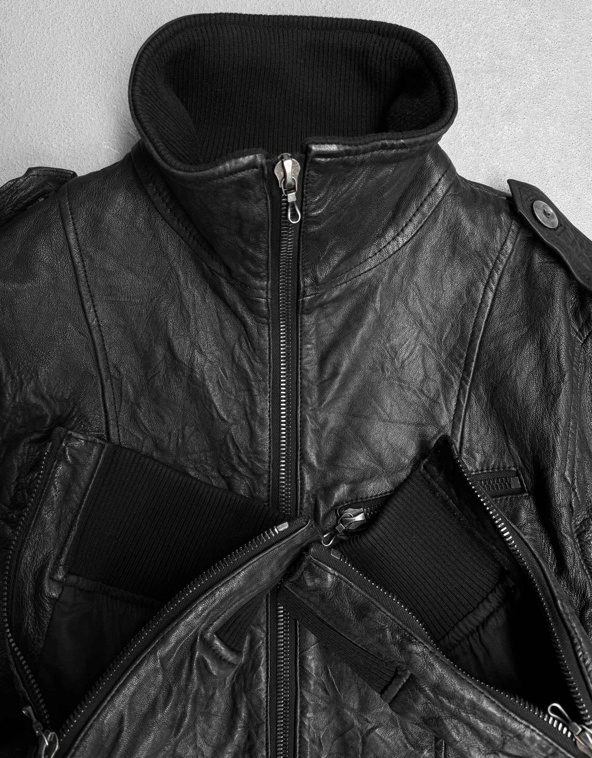 SHELLAC Early 00s Distressed Lambskin Leather Multi-zip Rider Jacket