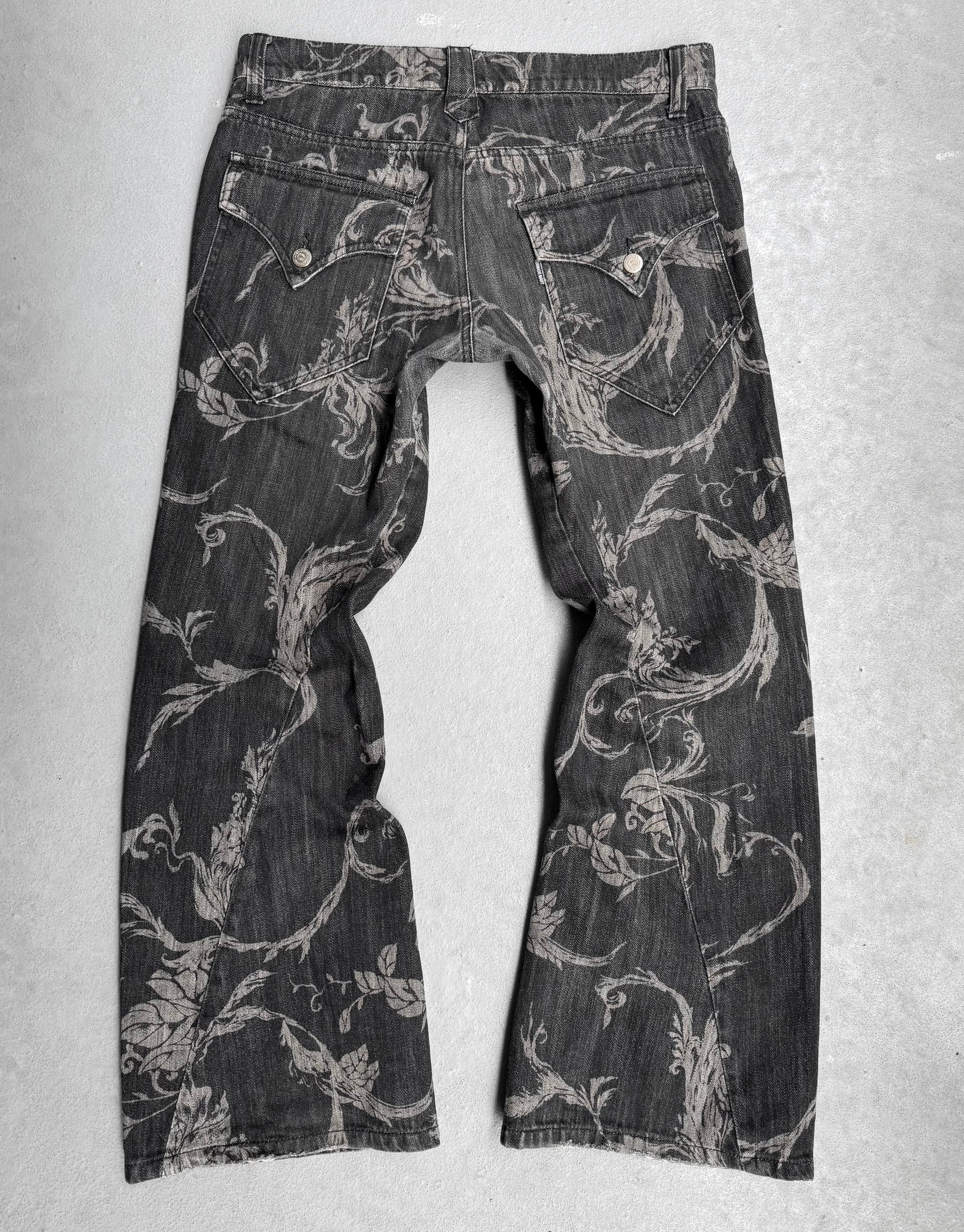 Tornado Mart Early 00s Floral Lace-up Flare Denim