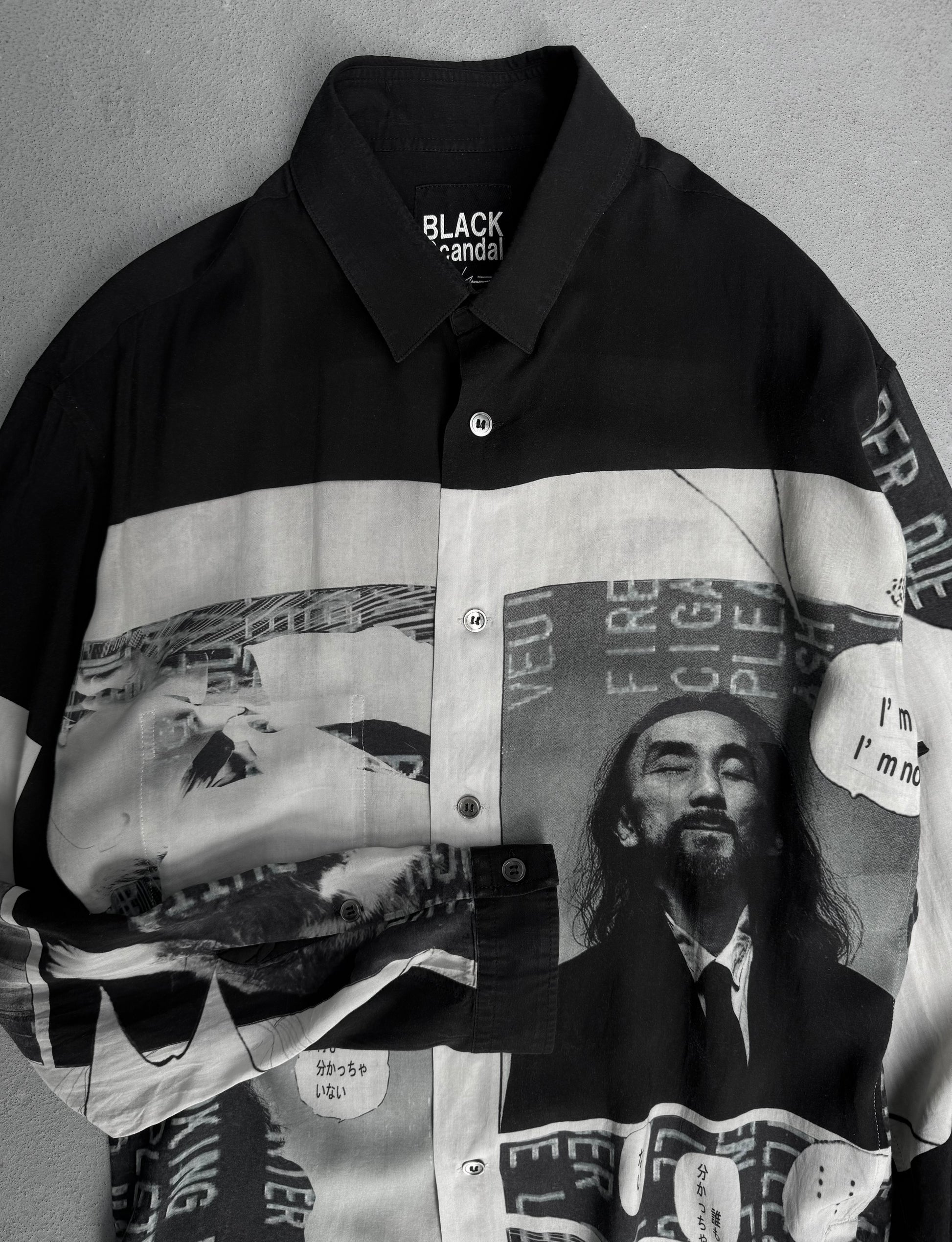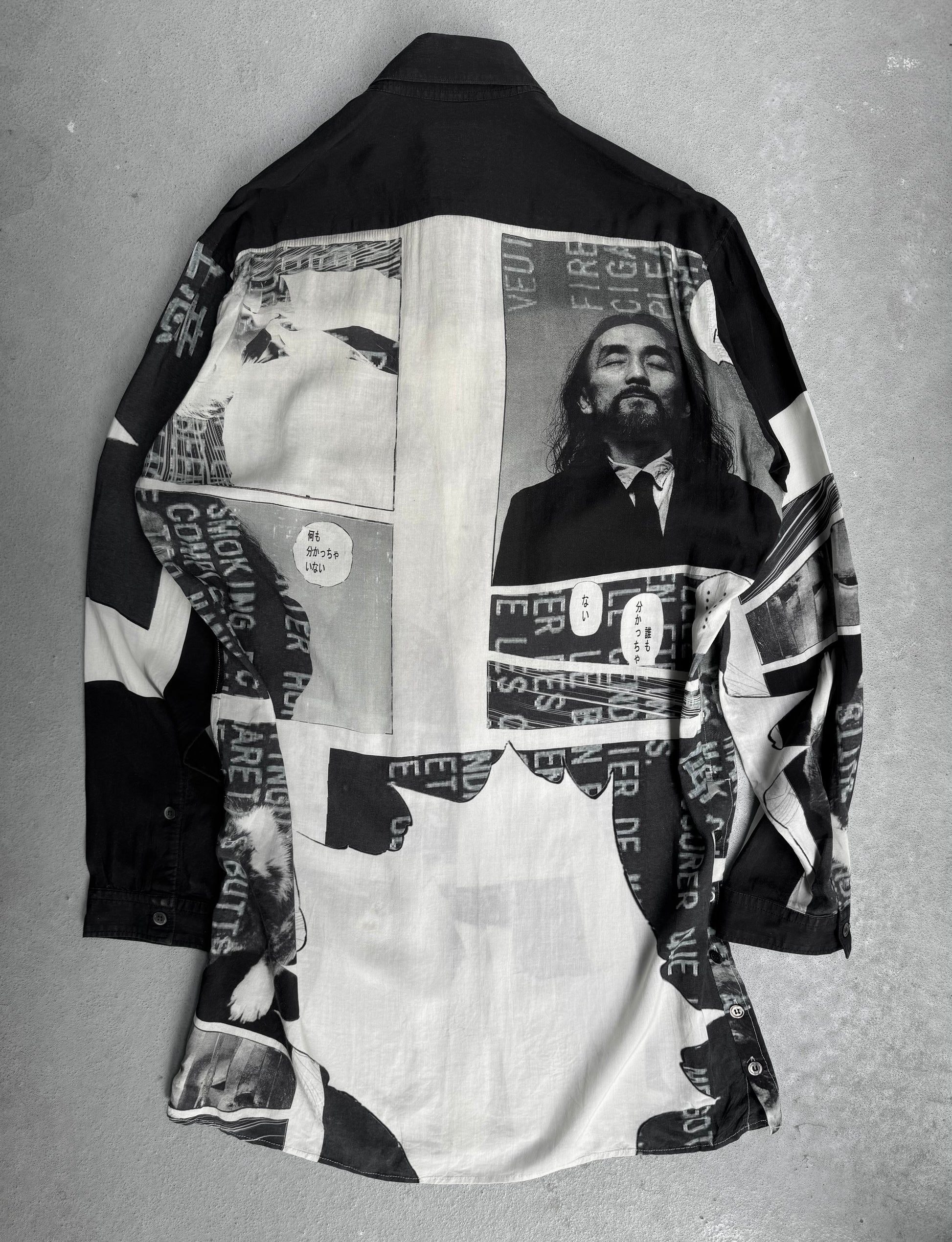 Yohji Yamamoto POUR HOMME BLACK Scandal AW18 Side Button Comic Print Long Shirt