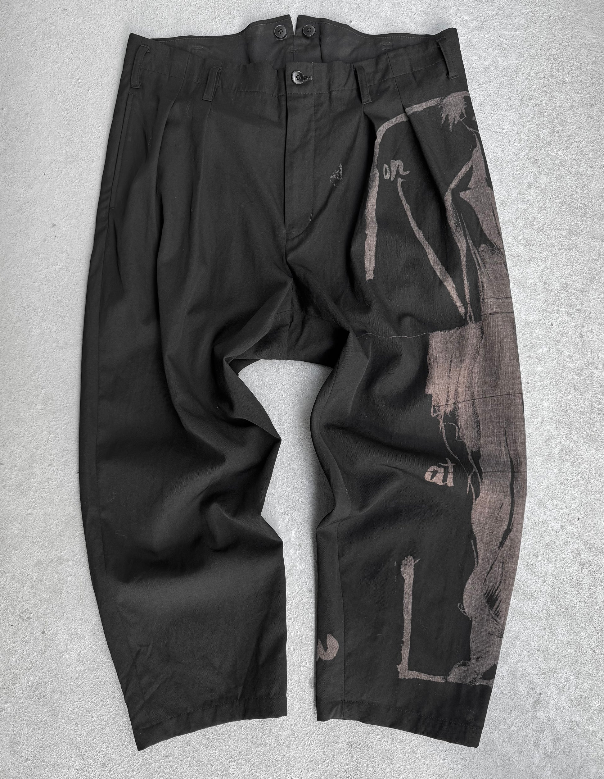 Yohji Yamamoto POUR HOMME SS17 Moody Graphic Pleated Drop-crotch Suspender Trousers